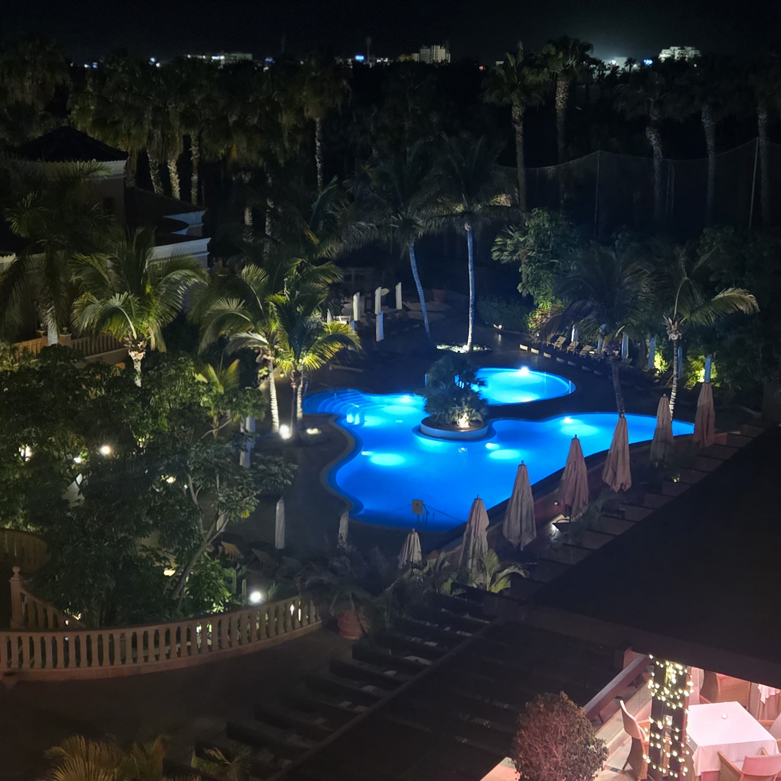 Wenn ich mal das Essen abstreiche, ist das „Las Madrigueras“ wirklich fein. Charly plantschte im Pool, ich stemmte ein paar Gewichte und ging in die Sauna und der Ausblick am Abend war wirklich fast wie bei „Tausend und einer Nacht“….: