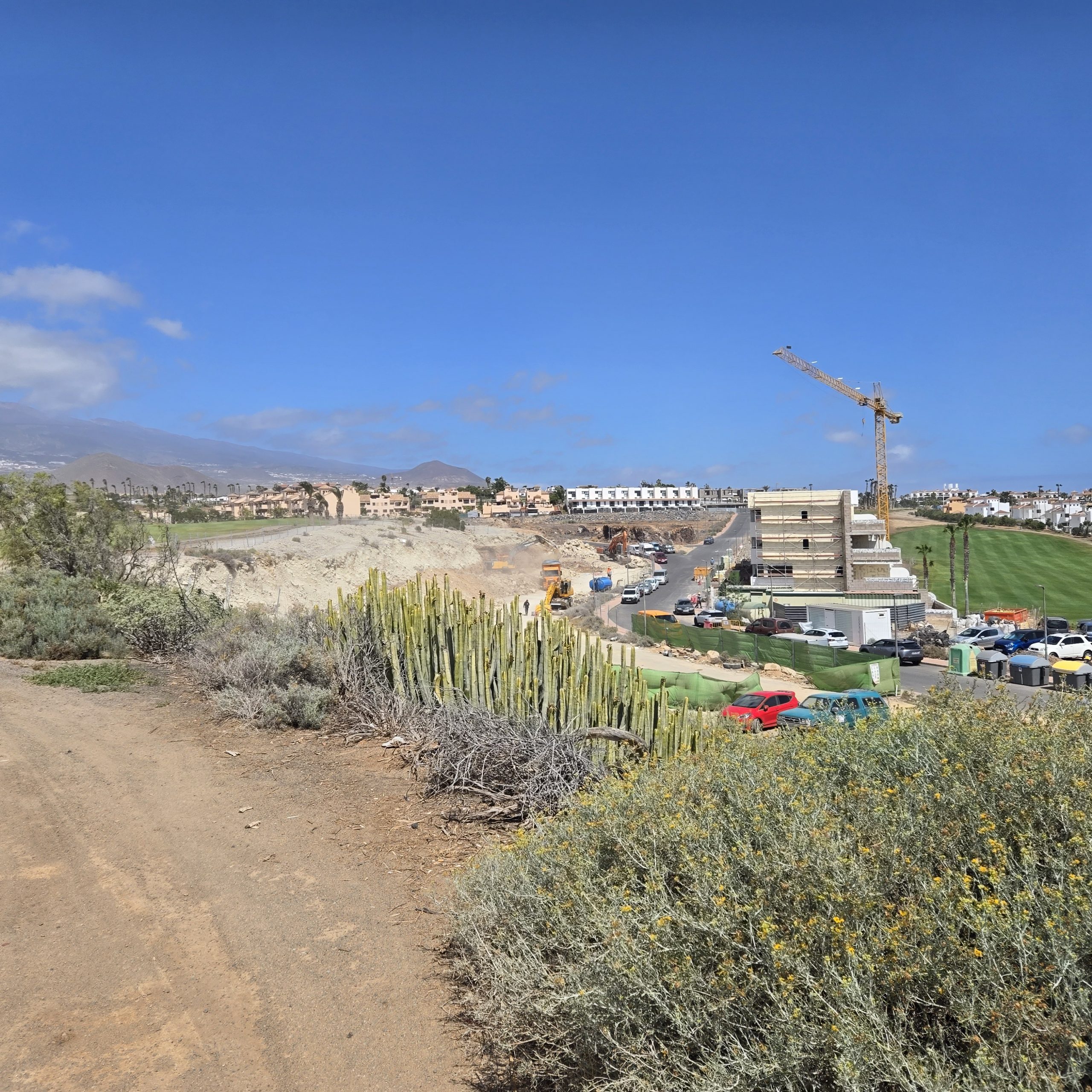 Ich hatte als Alternative zum hoteleigenen Golfplatz Starzeiten auf drei anderen Plätzen in der Umgebung gebucht. Mit dem Taxi machten wir uns auf den Weg zum Golfplatz „Amerillas“. Leider sahen wir schon bei der Anfahrt, daß heftiger Wind vom Meer ungünstige Bedingungen versprach. Wir starteten und machten uns keine Illusionen: Diese Runde würde heftig werden…..Aber am Ende war es nicht der Wind, der die Runde gruselig werden lies, sondern die gesamte Umgebung, die fast apokalyptisch anmutete: Rechts und links der Fairways begrenzten entweder endlose Apartmentanlagen oder genauso endlos erscheinende Baugruben den Platz. Der Ausblick auf das Meer am  15. Loch konnte mich auch nicht mehr besänftigen: Ich habe noch nie eine soooo hässliche Golfanlage gesehen! Und wie man in diesen Apartments seinen Urlaub verbringen, oder sie sogar kaufen kann, wird immer immer ein Rätsel bleiben, denn: Alle (gemessenen) 5 Minuten setzt eine Maschine zum Tiefflug an den nahegelegenen Flughafen an. (Und es gibt kein Nachtflugverbot wie in Deutschland)