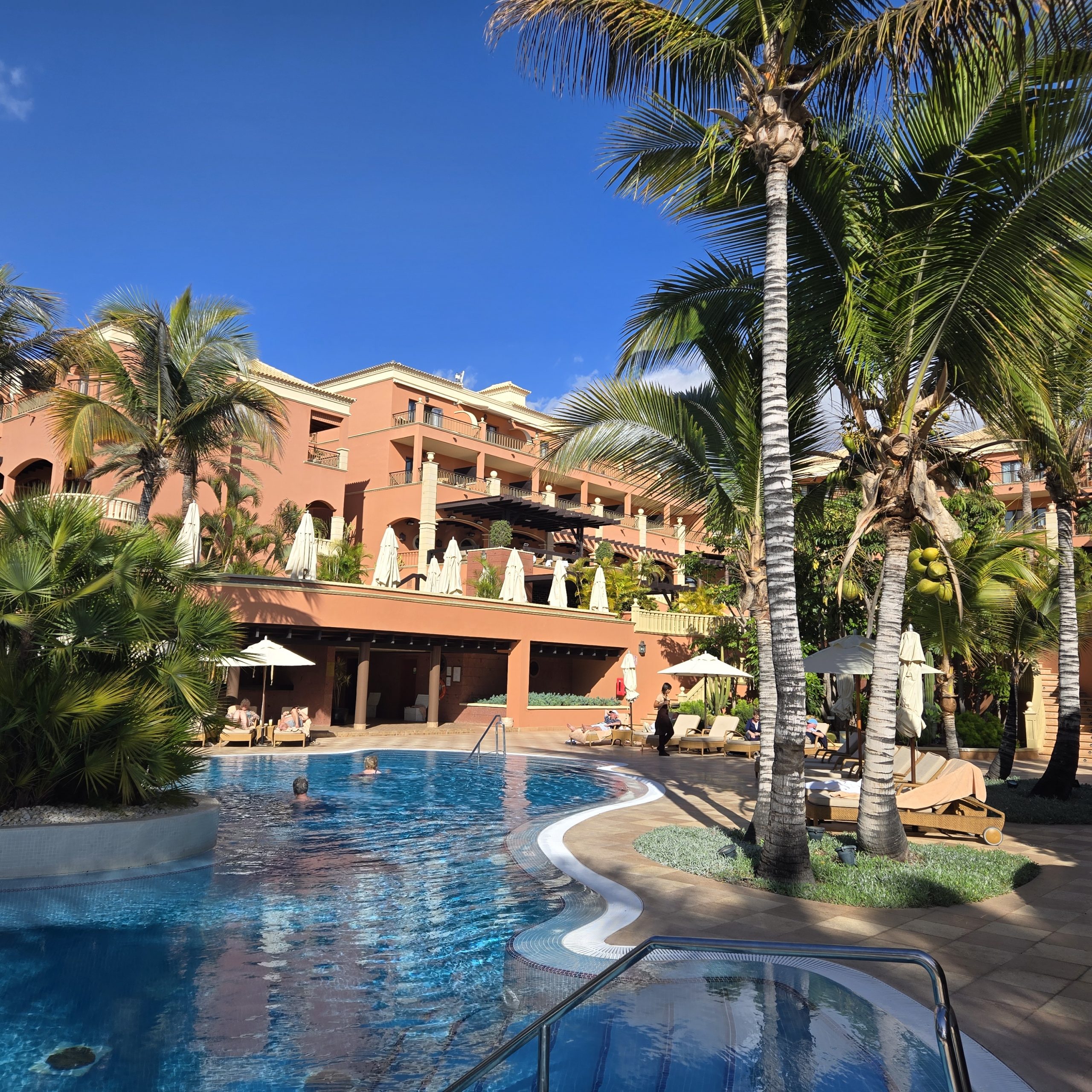 Als Adult-Only ausgewiesenes Hotel besteht die Klientel hauptsächlich aus Golfern in den besten Jahren, überwiegend aus England und Deutschland. Der zugehörige Golfplatz „Las Americas“ ist der Klientel angepasst gemütlich mit dem Buggy zu befahren und nicht übermäßig schwierig. Komplett ausgelastet, starten 4er-Flights in stetiger Folge, was nervige Wartezeiten verhindert. Interessant: Die Senioren starten vormittags, ab mittags bis in den Abend starten jüngere Leute aus umliegenden Hotels, „Residents“, oder Spanier. Ein paar Impressionen: