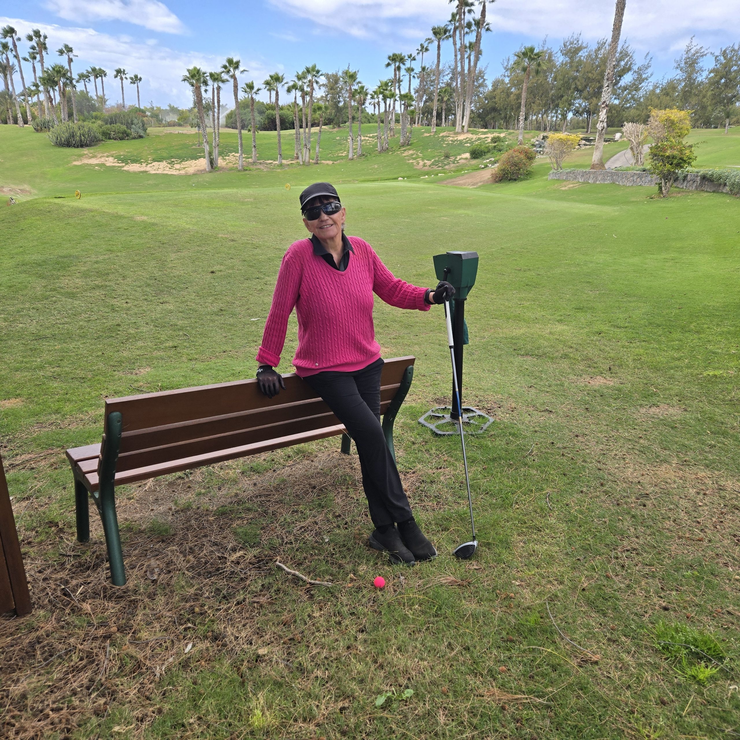 Im März entflohen wir dem wirklich harten Winter in Berlin nach Teneriffa, in das Hotel Las Madrigueras mit dem direkt angrenzendem Golfplatz „Las Americas“. Hierhin hatte ich vor 21 Jahren meinen ersten Allein-Urlaub als totale Golfanfängerin gebucht und die wunderschöne Anlage und den Golfplatz direkt vor der Tür nie vergessen. Allerding begann die Reise mit maximalem Horror: Der Flieger in Berlin startete zu spät, der Anschlussflug in Zürich war verpasst und nach stundenlangem Warten in Madrid kamen wir endlich nachts um halb zwei auf einem menschenleeren Flughafen an. Das Kofferband drehte leer und uns wurde klar, dass auch unser Gepäck verschollen war. Eine Verlustanzeige zu später Stunde kaum möglich, da niemand Kompetentes mehr vor Ort war. Ich beschloss, nicht hysterisch zu werden (nützt ja nix) kippte angekommen im Hotel aber erst einmal einen großen Wodka. Früh am nächsten Morgen ging ich zur Rezeption und erwischte einen wirklich sautüchtigen Mitarbeiter des Hotels. Ich schilderte die Lage, konnte nur die Gepäckscheine auf den Tickets vorweisen und stand daneben, als er eine unglaubliche Telefonaktion startete. Irgendwann sagte er, ich könne ruhig erst einmal frühstücken gehen – das würde dauern. Zusammen mit Charly entschied ich, dass es komplett Scheiße wäre, wenn wir quasi „nackt“ und mit schlechter Laune im Hotel sitzen bleiben würden und beschlossen, Golfspielen zu gehen, um 13 Uhr wäre sowieso unsere erste Startzeit. Die gemieteten Golfbags warteten im Untergeschoss, wurden auf den Buggy verladen und wie ich es jahrelang nicht vergessen hatte, öffnete sich auf Knopfdruck das Tor und vor uns lag der Golfplatz! Whow! Genauso toll, wie ich es in Erinnerung hatte!