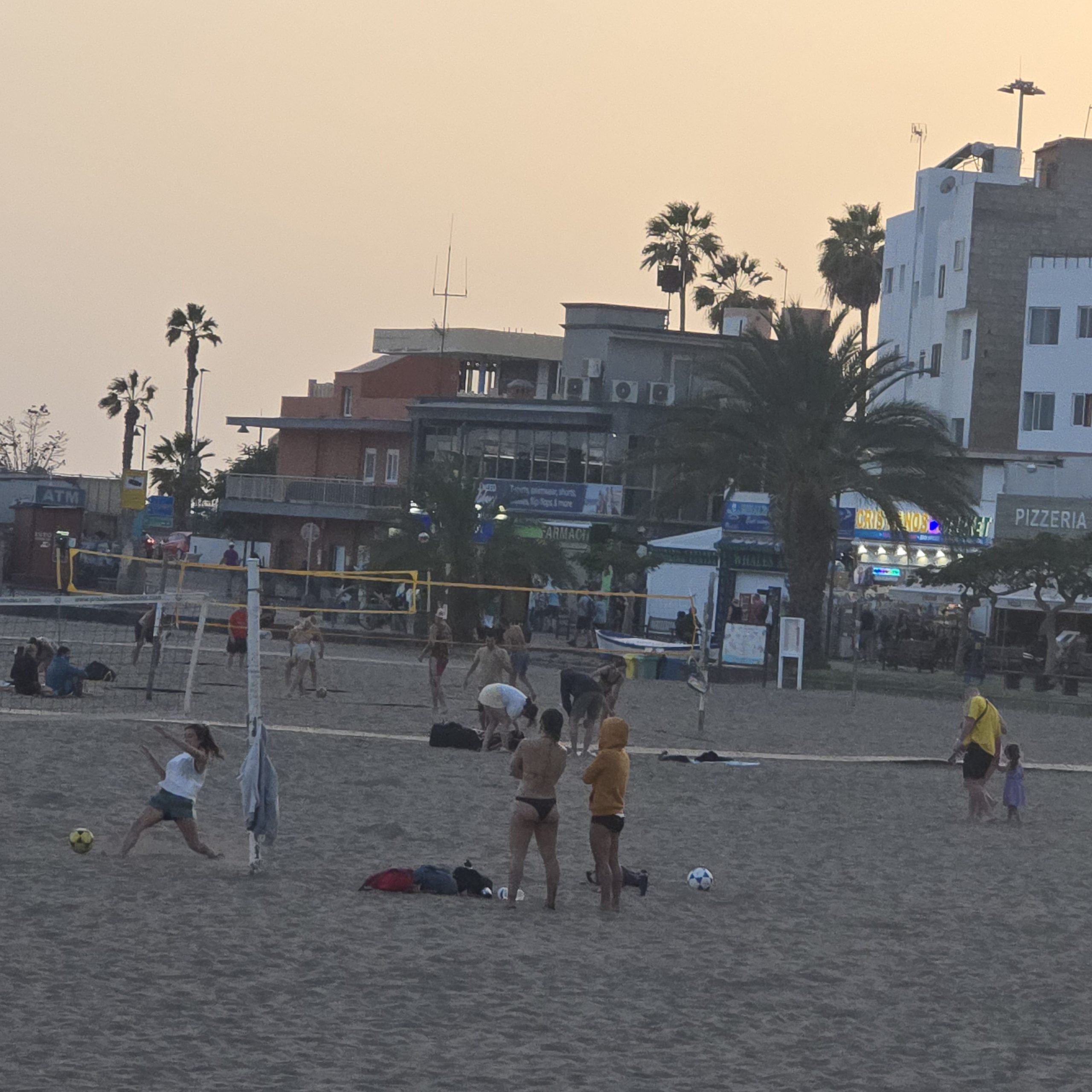 Leider konnte ich schon am ersten Abend im Hotel-Restaurant beim Blick auf die Speisekarte sehen: Hier werde ich nicht glücklich. Egal, was ich wählte, ob Filetsteak oder Salat mit Burrata, es schmeckt einfach nicht. Warum auch immer, der Koch konnte wirklich nicht kochen. Ich bekämpfe den Frust mit alkoholhaltigen Cocktails und versuchte, nicht zu meckern. Während unserer Golfrunden mit anderen Hotelgästen erfuhren wir aber schnell, dass es nicht nur uns nicht schmeckte. (Sogar die Engländer meckerten )Um dem Hotelessen zu entgehen, wanderten wir den Hügel hinab in die Hölle des Over-Tourismus, aßen auf der Promenade Burger, saßen inmitten des endlosen Stroms hässlicher Menschen auf der Suche nach dem Glück und konnten nicht fassen, wie irgendein denkender Mensch hier seinen Urlaub verbringen konnte. Ein Photo vom „Strand“: